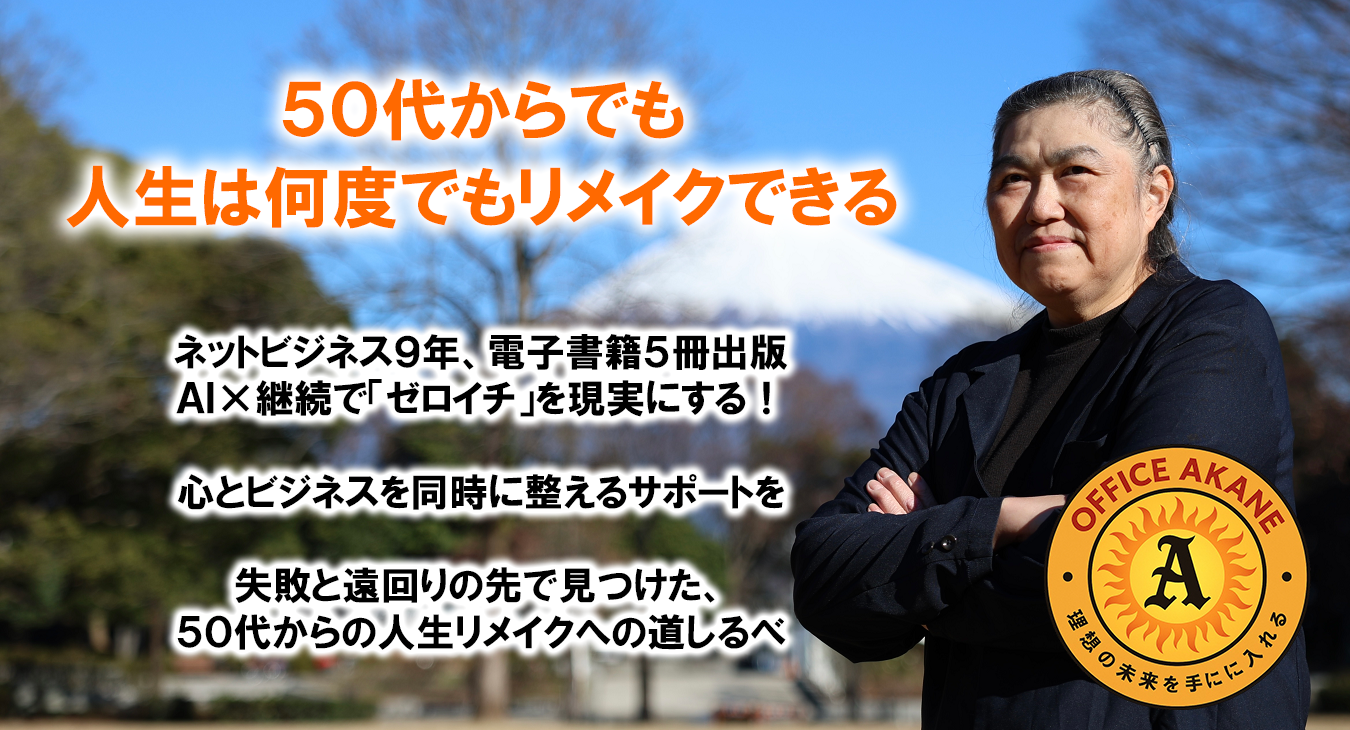 50代からの人生リメイクをテーマに、ネットビジネスと心の整え方を発信しています。
